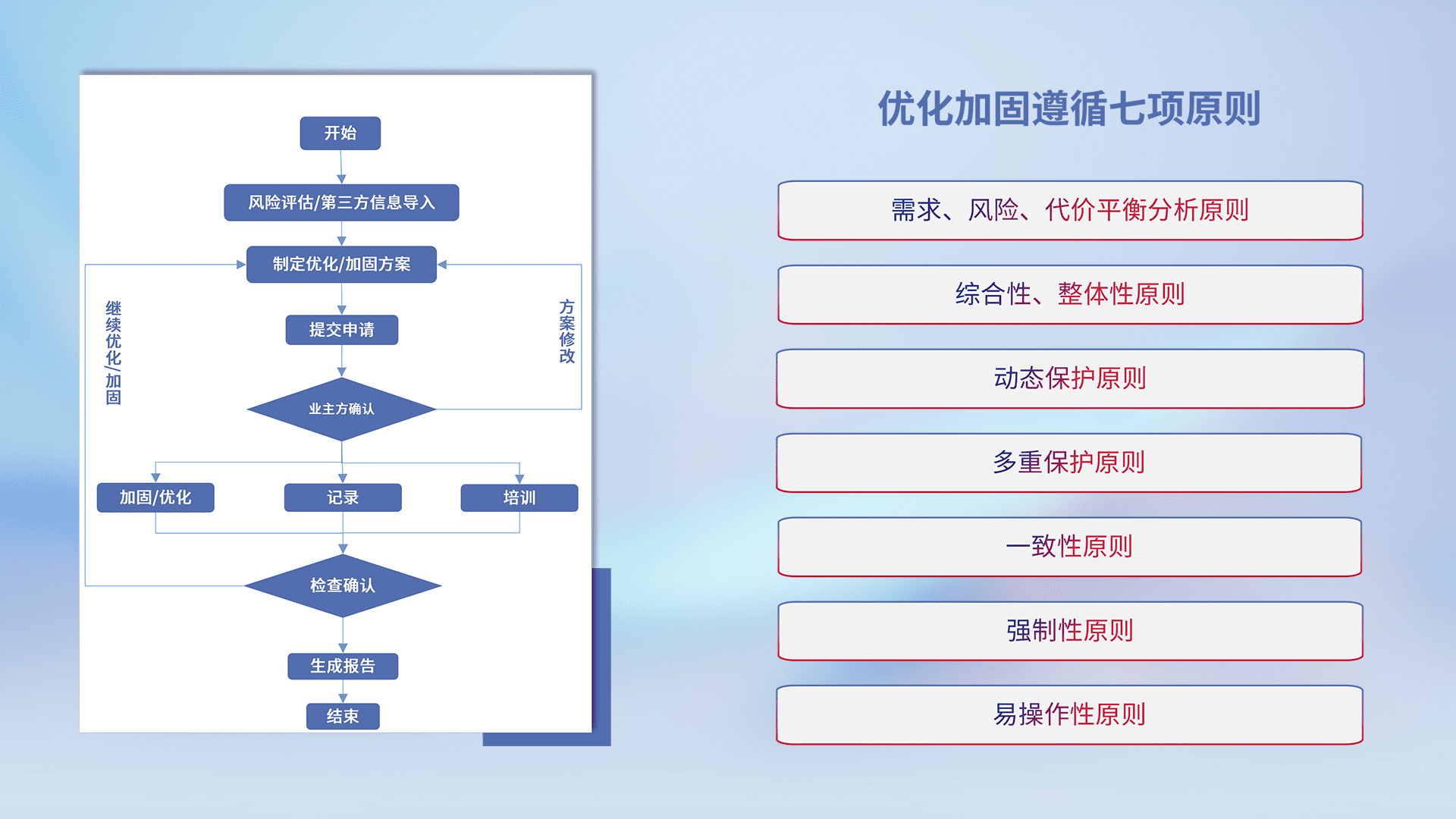 最大程度利用现有资产,,,,对评估发现的问题进行封堵与整改,,防止漏洞被利用,,,提升整体网络安全性,,,,为客户带来高标准的优化加固服务。。